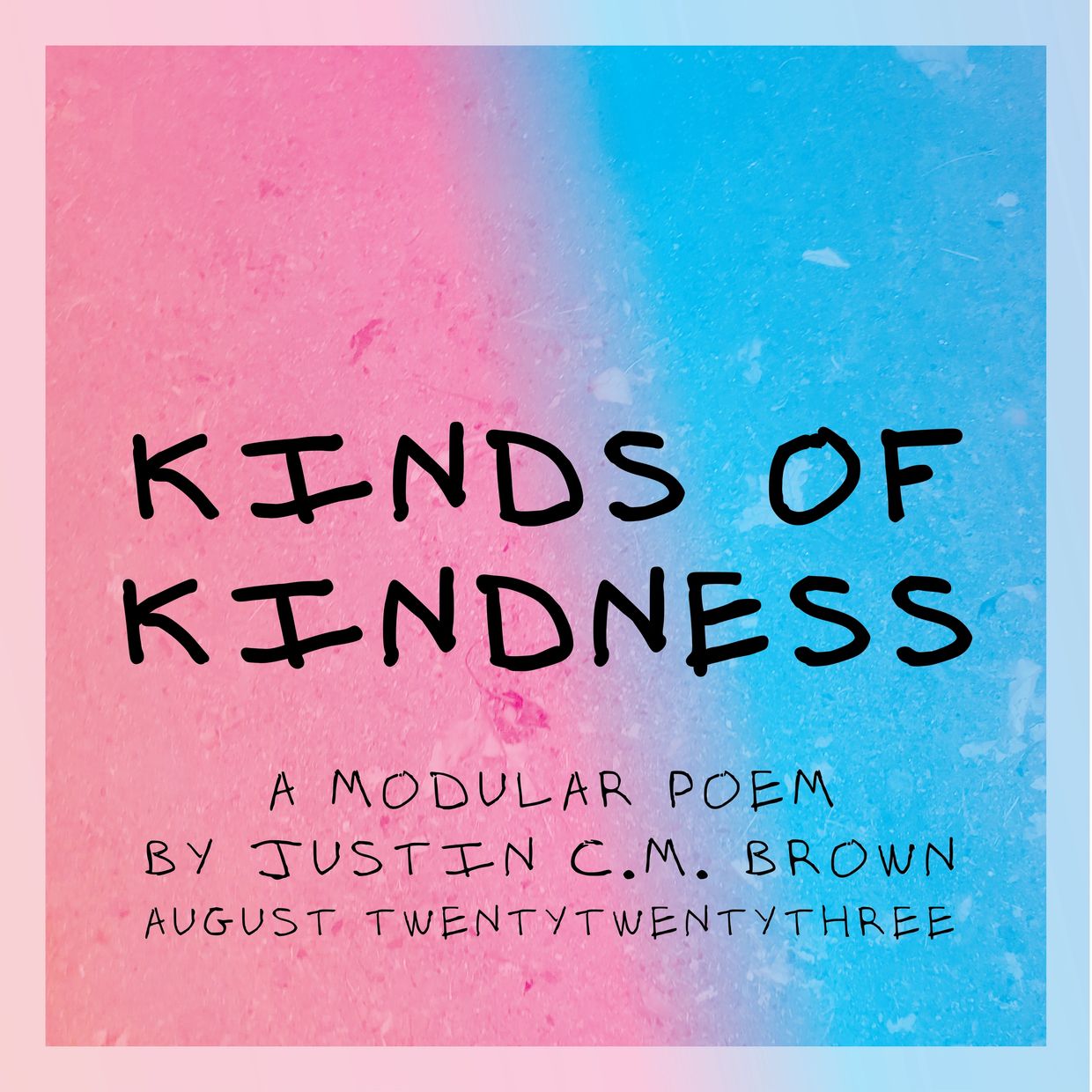 It is my hope that this selection of music may deepen the examination of kindness, even in superficial ways, so that the listener may have a greater readiness to deploy kindness in their relationships to themselves, their communities, and the universe. My sincerest thanks and respect to all of the artists included on this playlist (especially those who have interacted with the stories themselves). - JCMB 8.25.2023
